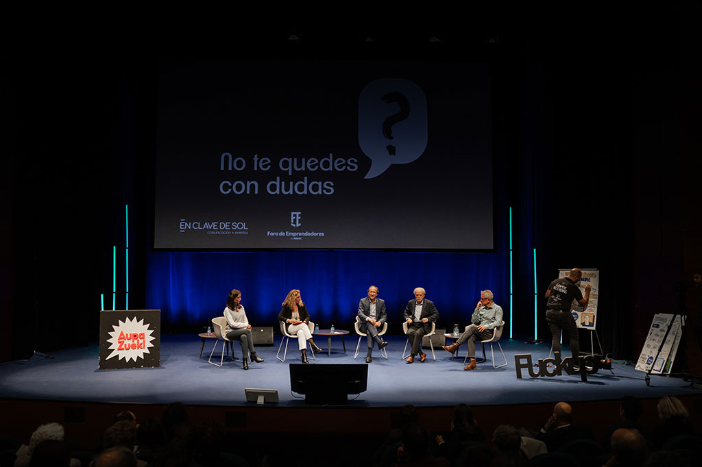 El evento, al que acudieron casi 200 personas, fue copresentado por Josean Rodríguez representando al Foro de Emprendedores de ADEGI y Sol Busca de nuestra agencia que, además, moderaron la mesa redonda que se produjo a continuación.